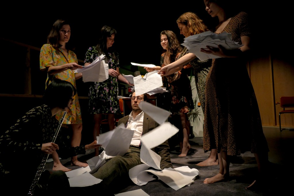 Switch makes an amalgam of almost every possible aspect of the theater, subtly transforming speaking into singing, instrumentalists into actors, ideas into dialogue… In the end, it becomes all Aylward: a tour-de-force presentation with genuine integrity and lots of comedy as well.